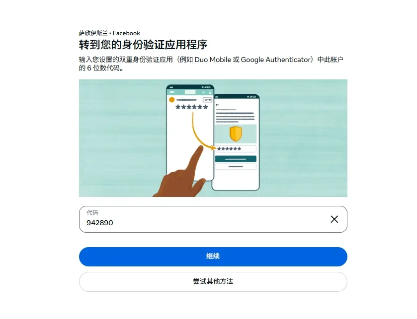 这是一个FB商品的发货内容: 61581247528965|47Vt5GTsX2|XXV2W57WJA3ABEDLIODQAO2RJ2LUTW7O|mmagachb4sxg@smvmail.com|c\_user=61581247528965;xs=20:-ZDH5u930PiGaQ:2:1758500652:-1:-1;fr=0kABlNoMelW8HbGbB.AWcM0fMfUXmvOfgRkP4fKpTnpHkx0BHahxcy5-e5MCEynPFb3KY.Bo0Jcr..AAA.0.0.Bo0Jcr.AWdBQX33Ib0gvnNfeqqocgb8GJA;datr=K5fQaP72pZ7SckDWtaSPr9Y8;|EAAAAUaZA8jlABPkD9gB98V01EXi3csfZCOV8qkRF2G2tQWs5diRvUn8TXomtvFZB3eHXmfHhFbtL4xtL6XMxOULDFKtG0smGdSCZCeZC3SCtOH6IrUbwQ6m981uwBmc9W8DVYvtcZBpi0fLQcNJg5k1YYaEmh4jfSkYTUIZCUj1gHLYpcAZCPZC4JXQU6vmx2QSFs2HFKHZCZA3RgZDZD 存活 商品介绍 发货格式:uid|密码|2fa|邮箱|cookie|token 账户状态 这里注意看 | 是分割符号 由此可见 账号为61581247528965 密码为47Vt5GTsX2 两部密钥为XXV2W57WJA3ABEDLIODQAO2RJ2LUTW7O 使用2FA登录不用理会其它数组是干嘛,后边还有邮箱和token用不上 2FA的使用地址为 [](https://2fa.show/)[https://2fa.show](https://2fa.show) 将两部密钥填入进去 即可获取6位验证码。 下面我们上图文操作,我这里是电脑网页版,手机上操作也是一样 1,打开https://www.facebook.com/ 或者你的手机FB~APP 输入账号和密码,点击登录  2,这里他提示你用别的设备验证的话 你就选择其它方法  3,选择身份验证程序去验证  4,我们打开身份验证网站 [2fa.show](https://2fa.show/) 去获取6位数验证码 输入卡密中的2FA两部验证密钥  5,获取到的6位数验证码 填入FB里登录即可,如果显示错误,请看验证码时间是否过期  6,登录完成,交易已经结束。提示异常请在联系卖家即可